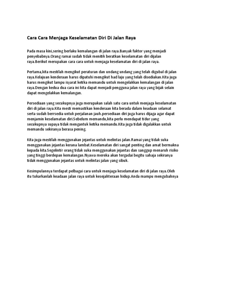 Cara Cara Menjaga Keselamatan Diri Di Jalan Raya Pdf