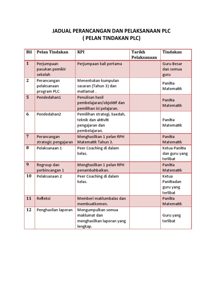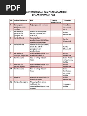 Jadual Perancangan Pelaksanaan Plc Di Sekolah 2020 Pdf